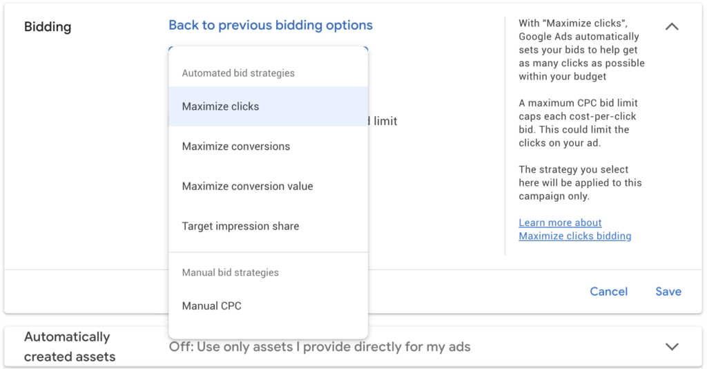 - High-Volume Campaigns: If your outdoor brand targets a large audience with multiple products or services, automated bidding is a more efficient way to manage bids across various keywords, ad groups, and locations.